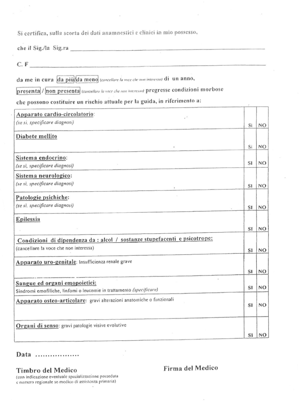 Documenti necessari per iscrizione CONSEGUIMENTO PATENTE